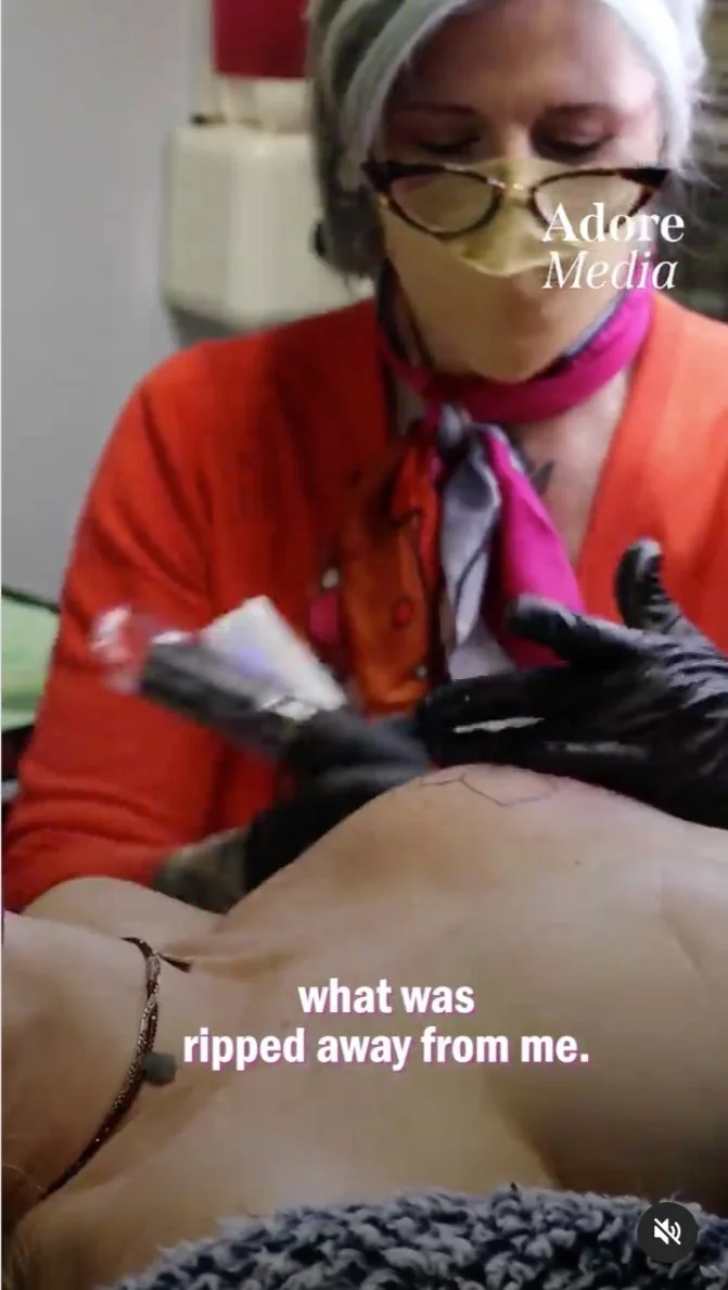 Sabine is a breast cancer survivor who received a double mastectomy. Friday Jones is the tattoo artist helping survivors reclaim their bodies after trauma.